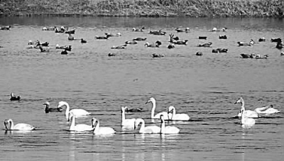 图1为:▲郑州黄河湿地是候鸟的栖息地,每年都有大批越冬的天鹅、野鸭等在这里栖息越冬。新华社记者王颂摄