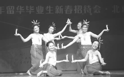 | 由教育部主办、教育部留学服务中心承办的“二○一○年留华毕业生新春招待会”日前在北京交通大学举行。图为来自泰国的留学生表演泰国传统舞蹈《蜡烛舞》。随着与世界各国越来越多的教育交流,我国不仅日益成为学子们向往的留学目的地国,而且越来越多的留学生毕业后留下来工作。 |