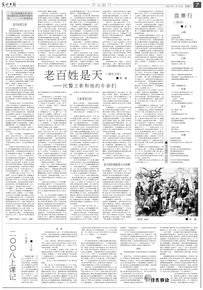 前不久,王影接受央视记者采访,谈到自己为人子、为人父、为人夫,有许多地方做得很不够时,这个刚强的汉子掉泪了。村民刘小飞给王影发了一条短信:“王所,在电视里看到你哭了,我也哭了。你是好人,你放心,我也要学你做个好人!”