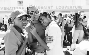 图为1月16日,在海地首都太子港机场,当地民众正在等待疏散撤离的飞机。新华社发