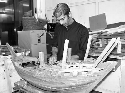 1月19日,在科威特首都科威特城,一名男子制作航海木船模型。木船是早期海湾地区的阿拉伯人出海捕鱼和采集珍珠以及与外界商贸往来的主要交通工具,也是海湾国家民俗文化的重要标志之一。多年来,制作木船的技艺以家族传承的方式被保留下来。许多掌握木船制作技艺的当地人利用业余时间在自家的作坊里制作并陈列木船模型,成为游客了解海湾地区阿拉伯文化的窗口。新华社发
