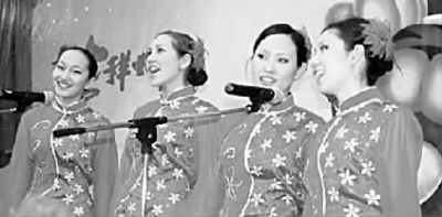 图为孔子学院学生在招待会上演唱中国民歌《茉莉花》。张春友摄