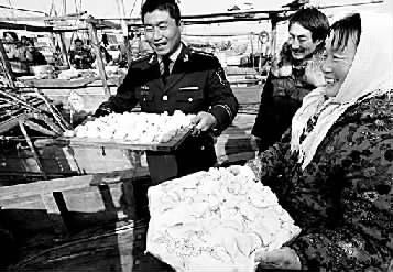 1月22日,是农历腊八节,山东省无棣县岔尖边防派出所民警在渔船上和渔民们一起包饺子熬腊八粥,亲如一家其乐融融。本报通讯员郑宪伟、李海琪摄