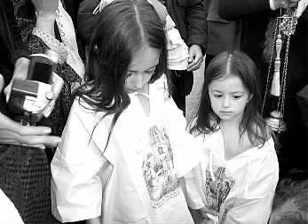 基督教众多教派各有圣诞节,俄罗斯和非洲一些东正教派在1月18日纪念耶稣降生和公元30年在约旦河接受表哥约翰的洗礼,又称洗礼节、主显节。信徒们冬季洗礼,祈求身心健康。图为接受洗礼前的俄罗斯小姐妹。周林雁摄