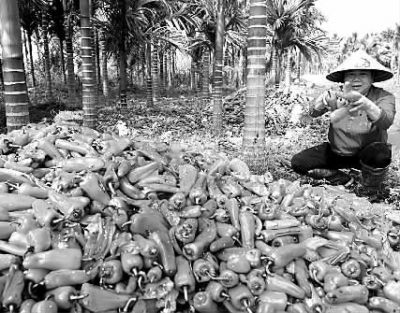 1月28日,琼海市潭门镇福田村一位村民展示被当垃圾倒掉的辣椒。近日,海南琼海市辣椒价格持续下跌,1月28日辣椒收购价每斤仅4角钱,低于当地椒农估算的保本价每斤5角钱。今冬琼海瓜菜种植面积13万多亩,其中种植椒类6万多亩,辣椒上市以来最高收购价达到过每斤9角钱。但由于广东、广西市场对海南辣椒的需求不如预期,琼海辣椒价格大幅下跌,不少椒农只得忍痛将大量滞销的辣椒当垃圾倒掉。新华社发(蒙钟德摄)
