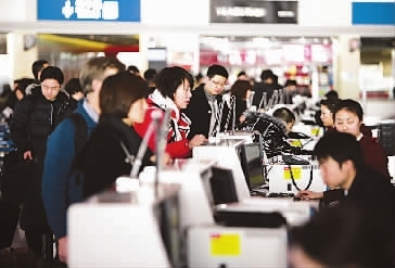 1月30日,北京首都机场迎来春运第一天,航站楼内旅客明显增多。北京首都机场今年的春运期为1月30日至3月10日,共计40天,预计客运量为753万人次;旅客高峰预计出现在2月19日(正月初六),约20.8万人次;航班架次高峰预计出现在2月11日(腊月廿八),约1466架次。新华社发(马儒壮摄)