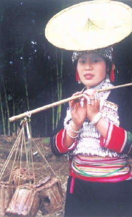 在我国各民族的生产、生活中,竹子有着非常重要的作用。彝族的灵竹崇拜,祈求的是子孙绵延;纳西族“素笃”竹篓,承载着生命之神;击打竹筒驱赶邪魔的竹筒舞跳出了哈尼族的豪迈;月光下竹林深处口弦拨动的是傈僳族男女的情深意长。在少数民族地区,狩猎中的弓箭、弩机;建筑中的竹楼、竹篱;舟楫中的竹排、竹筏;服饰中的竹布、竹屐;餐饮中的竹筷、竹笋;医药中的竹茹、竹沥;旅途中的竹轿、竹杖;工艺品中的竹编、竹雕;生活用具中的筐、蒌、箩、筛、箕等等,甚至跨越江河天堑的竹溜索……可以说无竹不成寨,无竹不成楼、无竹不成席、无竹不成舟、无竹不成书、无竹不成乐。