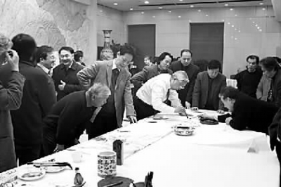 2月3日,全国政协委员书画家迎春联谊会在全国政协礼堂举行,20多位艺术家委员欢聚一堂,共同探讨中国书画艺术发展方向。本报通讯员忻跃摄