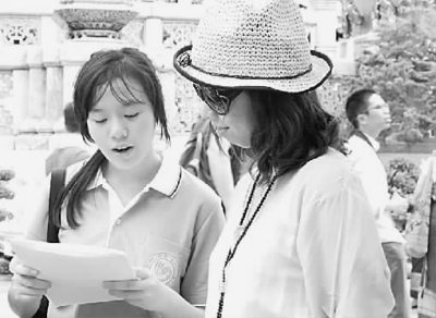 日前,泰国易三仓商业学院孔子课堂举办第一期汉语小导游活动,该校的十名泰国中学生接受了导游素质及旅游汉语知识相关培训。这是泰国孔子课堂首次举办该活动。图为在泰国首都曼谷的大王宫,一名泰国中学生(左)采访