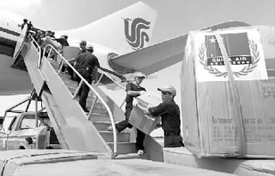 中国政府无偿援助海地地震灾区的第三批物资于当地时间8日上午11时运抵太子港国际机场。至此,中国承诺的价值3000万元人民币的人道主义赈灾物资已全部运抵海地。新华社发(华金·莫雷利摄)
