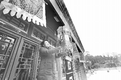 工作人员在颐和园苏州街挂宫灯。颐和园苏州街第十九届春节宫市目前准备就绪,将于2月14日(农历正月初一)至2月28日(农历正月十五)举行。苏州街位于颐和园后湖,曾是专供清代帝后逛市游览的买卖街,现今的苏州街春节宫市成为集“清味”“京味”“南味”为一体的春节特色文化活动。新华社记者张旭摄