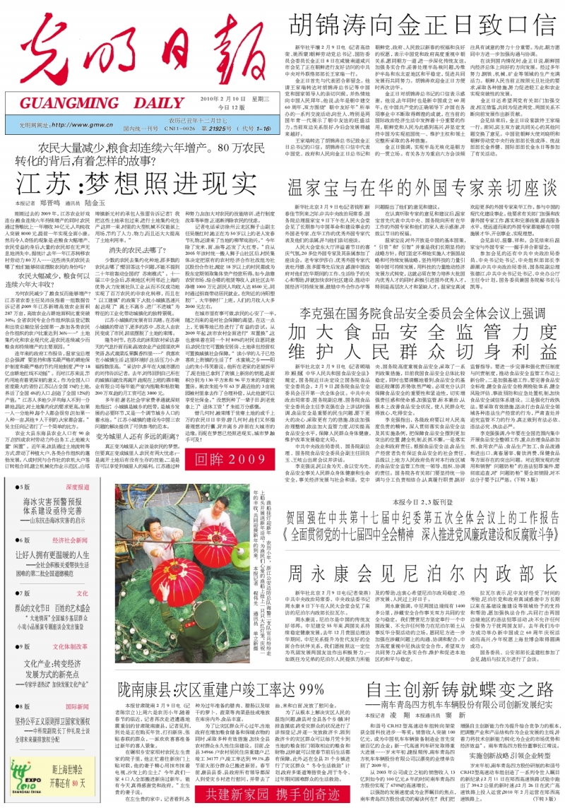 为何农民减少了,粮食反而能够增产?江苏省农委主任吴沛良指着一组数据告诉记者:2009年江苏新增高效农业面积287万亩,高效农业占耕地面积比重突破30%;全省农民专业合作组织依法登记数和出资总额位居全国第一,参加各类农民合作组织的农户比重达到36%……“土地集约化和农业现代化,是农民连续减少而粮食却持续增产的主要原因。”