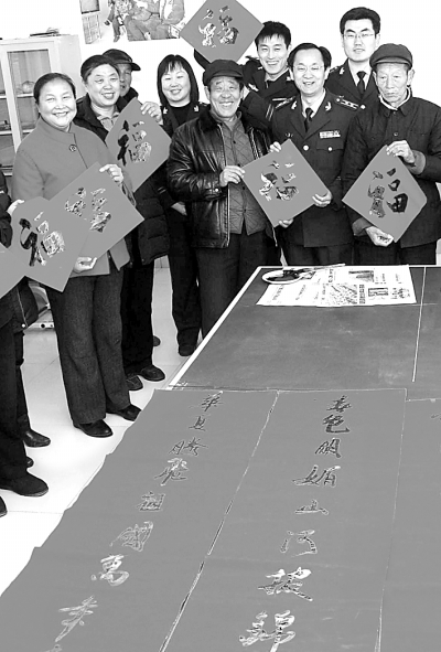 | 新春之际,山东省潍坊市寒亭区社会福利中心老年活动室里欢声笑语,潍坊边防检查站官兵现场为老人们书写春联和“福”字,为他们献上新春的祝福。 |