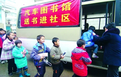 | 孩子们排队进入“汽车图书馆”。日前,安徽合肥市少年儿童图书馆创办的“汽车图书馆”开到合肥市瑶海区凤阳一村社区,满载千余册图书供社区的儿童借阅,以丰富孩子们春节期间的文化生活。“汽车图书馆”的工作人员还为孩子们送上文具等新年礼物。 新华社记者 刘军喜摄 |