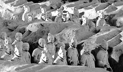 毫无疑问,如果不是1974年被发现,这座考古遗址中的数千件陶俑将依旧沉睡于地下。秦始皇,这个第一个统一中国的皇帝,殁于公元前210年,葬于陵墓的中心。在他陵墓的周围环绕着那些著名的陶俑。结构复杂的秦始皇陵是仿照其生前的都城——咸阳的格局而设计建造的。那些略小于人形的陶俑形态各异,连同他们的战马、战车和武器,成为现实主义的完美杰作,同时也保留了极高的历史价值。