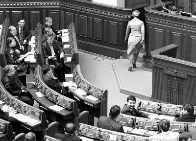 三月三日在乌克兰首都基辅乌总理季莫申科在议会发表讲话后离开乌克兰议会三日通过了对总理季莫申科领导的内阁的不信任案