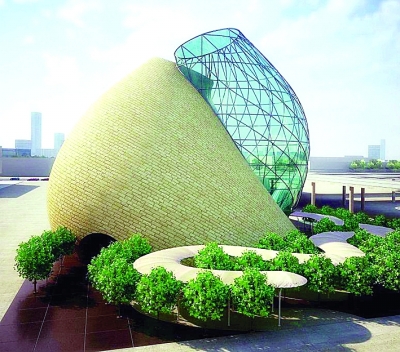 图②:以色列馆。上海世博会以色列国家馆日前举行竣工仪式。该馆面积两千平方米,其主建筑如双手环抱的海贝壳,用玻璃和岩石建成。(本报记者 陈克勤报道)