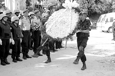 中国驻海地防暴队清明节前祭奠遇难的8名中国警察
