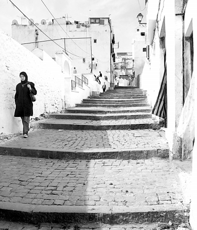 4月3日,一名妇女走在阿尔及利亚首都阿尔及尔的卡斯巴古城街头。在即将开幕的上海世博会上,阿尔及利亚将展示首都阿尔及尔卡斯巴古城的风貌。卡斯巴位于阿尔及尔东北部,1992年被联合国教科文组织列为“世界人类文化遗产”。 新华社记者 夏晨摄
