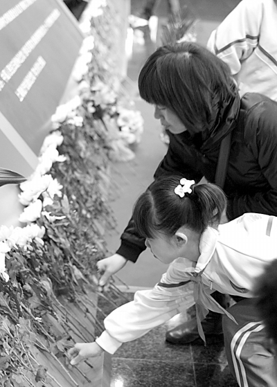 连日来,每天都有大量民众到中国人民抗日战争纪念馆缅怀先烈,清明节这天达到高潮。很多市民也带着孩子来祭奠英烈献花观展。本报记者 吴力田摄