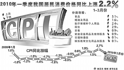 背景:今年中央确定了居民消费价格涨幅3%左右的预期目标,但今年以来,居民消费价格出现了一定程度的上涨——1月上涨1.5%,2月上涨2.7%,3月上涨了2.4%,一季度居民消费价格上涨2.2%。通货膨胀,是否已成为中国经济的一个“暗礁”?