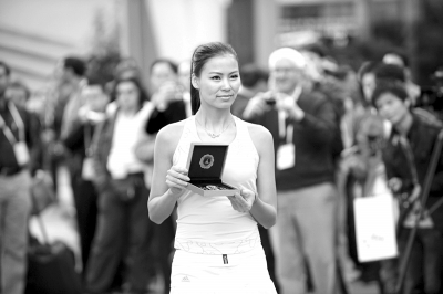 4月15日,模特在广交会现场展示2010广州亚运会特许商品。当日,广州亚组委在第107届广交会现场举办了2010广州亚运会特许商品精品展示暨新品发布会。新华社记者 刘大伟摄