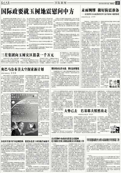 新华社北京4月17日电(记者顾瑞珍)中共中央政治局常委李长春17日晚主持召开中央宣传文化部门和主要新闻单位负责人会议,传达贯彻17日下午中央政治局常委会议精神,对进一步做好青海玉树抗震救灾宣传报道工作作出部署。李长春强调,宣传思想战线要坚决贯彻中央政治局常委会议精神,坚持及时、准确、全面、客观的原则,认真做好青海玉树抗震救灾宣传报道工作,大力弘扬伟大的抗震救灾精神,着力营造万众一心、众志成城、迎难而上、敢于胜利的良好氛围,为做好抗震救灾工作提供强大的精神动力和舆论支持。