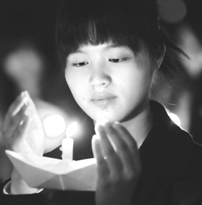 4月20日,南开大学文学院的学生手捧蜡烛悼念玉树地震遇难同胞。当晚,天津南开大学文学院师生在校园内手捧蜡烛,组成爱心图样,表达对青海玉树地震遇难同胞的深切哀悼,并为青海玉树地震灾区群众送去祝福。新华社记者 刘海峰摄