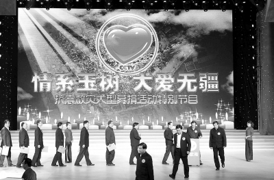 4月20日,“情系玉树、大爱无疆”抗震救灾大型募捐活动特别节目在北京举行。 新华社记者 丁林摄