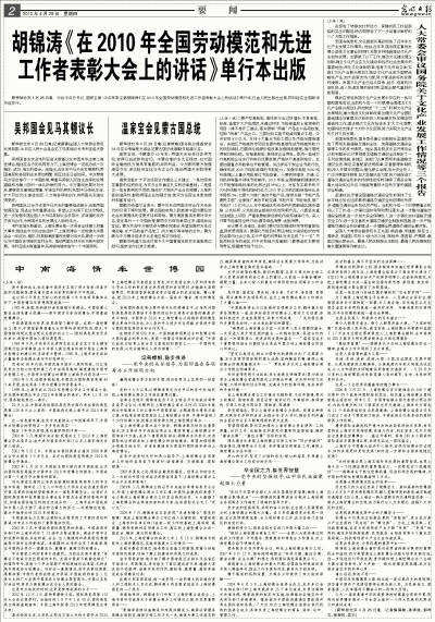 胡锦涛《在2010年全国劳动模范和先进工作者表彰大会上的讲话》单行本出版