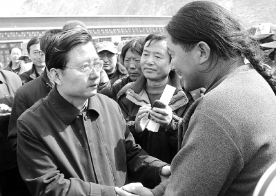记者:玉树地震后,我们发现您一直待在灾区。作为一省的书记,您还有很多工作要做,为什么一直坚持在抗震救灾第一线?