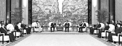 | 4月29日,中共中央总书记胡锦涛在上海会见前来出席上海世博会开幕式的中国国民党荣誉主席连战、吴伯雄和亲民党主席宋楚瑜等台湾各界人士。新华社记者 黄敬文摄 |