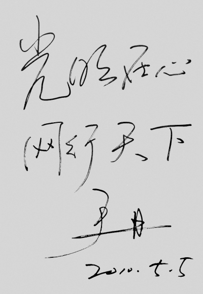 于丹:我在日本参加世博论坛的时候,主持人忽然问了我一个问题:如果世博会上只能展示一样最代表中国的东西,你脑子里会出现什么?那一瞬间,我脑子里出现了很多重要的东西,比如说山水画、脸谱、折扇,还有中国的红木家具,但是最后我给出的答案是笑脸——而且这种笑,不是那种职业性、礼貌性的笑,而是发自内心的微笑;它不一定是过分热情的大笑,也不一定带着寒暄,它就是从容、欢迎、内心流露的笑容。看完世博会后,如果发自内心地觉得文明是如此辽阔,我们每一个人在这个文明体系中会被拓宽生命的隔绝,会被打开眼界,会被放开自由,那微笑就浮生起来了。你的收获不是要写一段观后感,不是要去说一段宣言,有一个笑容就够了。我所期待的世博会就是让大家能有更多发自内心的微笑。