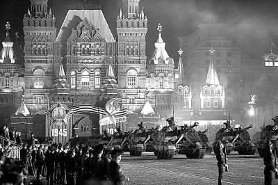| 5月4日,坦克方队在莫斯科红场参加阅兵式彩排。今年的5月9日是卫国战争胜利65周年纪念日。俄将在18座城市举行阅兵式,在24座城市举行军人游行,共约10万名军人参加。 新华社记者 鲁金博摄 |