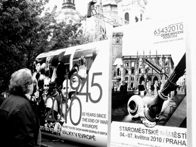 为纪念捷克人民反对纳粹占领者的起义和第二次世界大战结束65周年,捷克有关部门和组织近日在各地举办音乐会、追思报告会、图片及实物展览等多种形式的纪念活动。图为游客在布拉格老城广场观看捷克人民战后欢庆胜利等历史图片。本报记者 夏茂盛摄