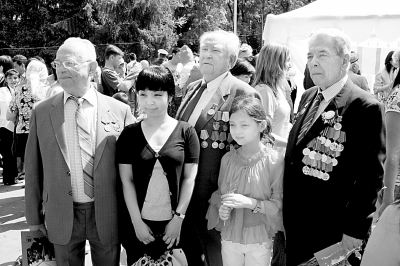 本月1日开始,哈各地欢庆这一伟大节日的活动就已经拉开序幕。在阿拉木图,主要街道早已挂满带有胜利日标志的旗帜,写有“伟大的老战士,我们永远感谢你们”的巨型宣传画随处可见。9日当天,阿拉木图一扫连日的阴雨,天气异常晴朗。一大早,人们便自发地来到位于市中心的“潘菲洛夫-28勇士”纪念公园,向无名烈士墓和长明火敬献鲜花。公园里随处可见手捧鲜花的年轻人和孩子向身着挂满各种勋章的军装的老战士祝贺节日并献花。“向这位爷爷献花,并说谢谢他们”,这是记者9日当天在公园内无数次听到的父亲或母亲给自己尚且年幼的孩子的教导。