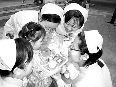 | 日前,九江学院附属医院的护士们来到九江市社会福利院,给这里的孩子带来儿童书刊和食品等礼物,教他们识字,陪他们做游戏,以实际行动迎接“5·12”国际护士节。近年来,九江学院附属医院注重通过各种形式,提升医务人员的职业修养,改善医患关系,更好地为当地百姓的健康保驾护航。本报通讯员 谢仁山摄 |