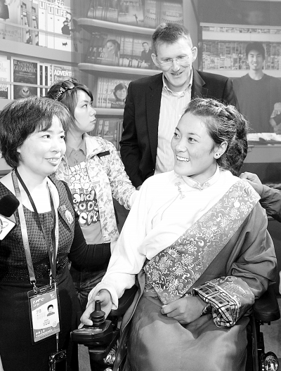 观看完展馆的中国残疾人艺术团团长邰丽华用手语说:“除了中国馆以外,我最喜欢的就是生命阳光馆。”