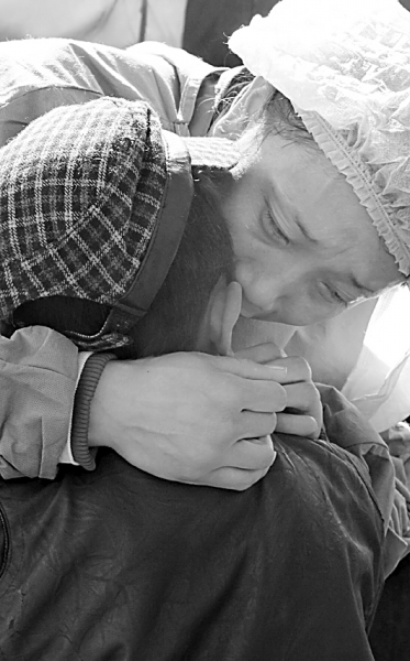 | 隆宝镇卫生院帐篷外,助产士扎拉把7岁的儿子紧紧拥在怀中,喜极而泣(5月10日摄)。这是扎拉在震后第一次见到儿子。玉树县隆宝镇卫生院的7名女医护人员,从地震发生到现在,一直坚守在帐篷卫生院里,没有回过家,没有请过假。新华社记者 李响摄 |