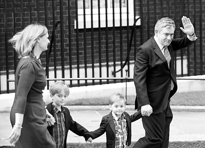| 5月11日,在英国伦敦,布朗(右)在唐宁街向人们挥手。布朗当天在伦敦首相官邸外发表讲话,宣布辞去首相职务。新华社记者 曾毅摄 |