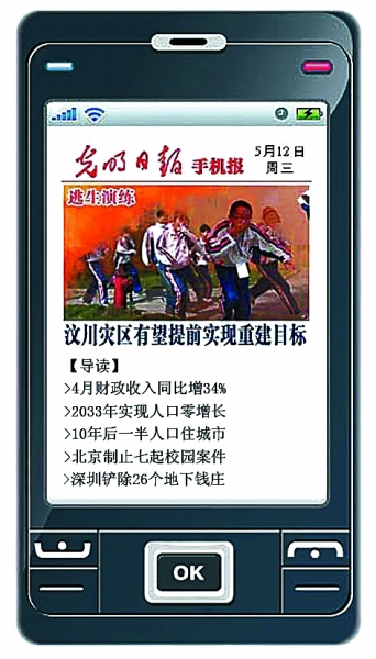 本报北京5月12日电(记者陈建栋)光明日报手机报的读者可能已经发现,今天早上,一份全新的光明日报手机报准时出现在您的手机中了。这是光明日报手机报自去年7月创刊以来,首次全面改版。改版以后,光明日报手机报的新闻资讯更加丰富,文化气息更加浓厚,服务功能更加完善,阅读体验更加舒适。