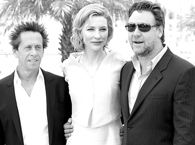 5月12日,第63届法国戛纳国际电影节开幕影片《罗宾汉》的制片人布里安·格拉泽尔与主演澳大利亚演员凯特·布兰切特和罗素·克劳(从左至右)在法国戛纳亮相。当天,第63届法国戛纳国际电影节拉开帷幕。今年戛纳电影节开幕式将在法国一些电影院里进行同步转播,让更多影迷感受到参与的乐趣。