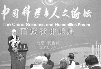 日前,由著名理论家郑必坚和著名科学家路甬祥倡导发起的“中国科学与人文论坛”,迎来百场演讲庆典。图为中国科学与人文论坛理事长郑必坚在庆典论坛上,就如何更加主动地应对时代提出的重大课题开展理论战略研究和咨询研究,发表精彩的演讲。