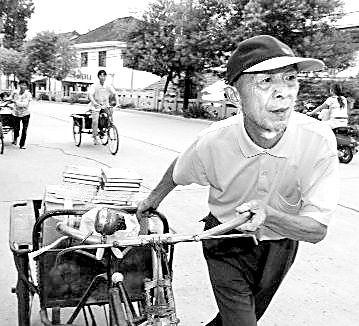 面对老区的贫困现状,周火生发现光靠自己从工资中节省是远远不够的。他从自己的教学中得到启发,决定通过义卖图书的方式,筹集捐款。从此,这位白发苍苍的老人,每天风吹日晒,蹬着一辆三轮车,开始义卖征程。