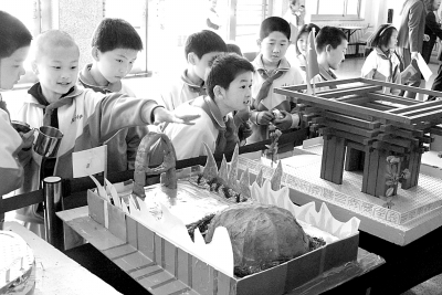 为促进学生综合学习能力的提高,北京小学在四年级开设了名为“世博”的校本课程,每班负责一个洲,每组一个国家。学生们查阅资料,动手制作出一些国家展馆的模型和反映不同国家特色的展板在校园展出。学生们丰富了知识,开阔了视野。本报记者 吴力田摄