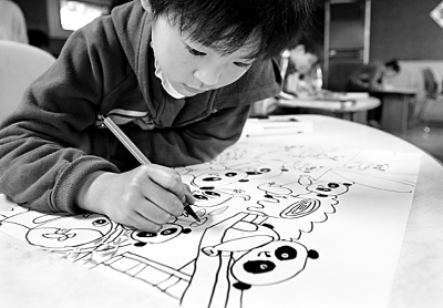 下图:“生物多样性日主题活动”在沪举行,5月22日,小朋友在参加“我爱熊猫、保护生物多样性”绘画比赛。 新华社记者 凡军摄