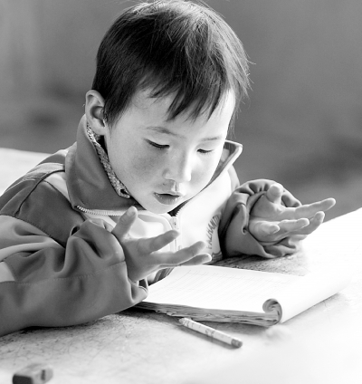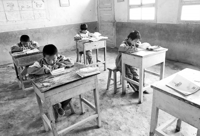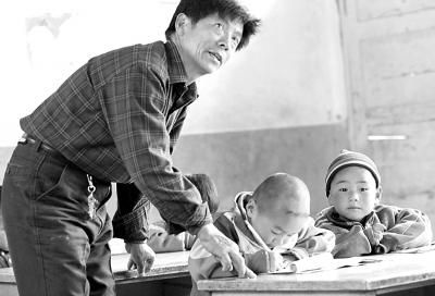 甘肃省民勤县西渠镇食珍村小学,现有两位老师、十名学生。周兴德在这儿教书已经12年,十个孩子在这里上完学前班和小学一年级后将转到西渠镇完全小学读书。周兴德老师介绍说,这所小学已经有一百多年历史,上世纪七十年代,这所学校设初中部时有二百多名学生,2009年仅剩下十九名学生。这个三万人的乡,一年出生才十几个孩子,育龄青年大多外出打工,每年考出去的学生近四千人,回来的不足十分之一。随着经济的发展,农村人口不断向城市转移,农村小学将会慢慢淡出人们的视线。图①扳着手指做算术的娃。图②教室。图③课堂上的周兴德老师。本报记者 高腾摄