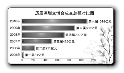 从“招展难”到“一位难求”,从20亿元、200亿元、500亿元、700亿元、800亿元,到今年交易额突破1000亿元——深圳国际文化产业博览交易会总经理叶建强见证了文博会六年的发展,“文博会从创办初期频受质疑的一座城市文化产品展示台,悄然成长为推动中国文化产业发展的一个重要平台,一个展示中国文化产业发展最新成果的亮丽窗口”。