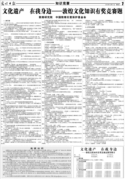 文化遗产 在我身边——敦煌文化知识有奖竞赛题