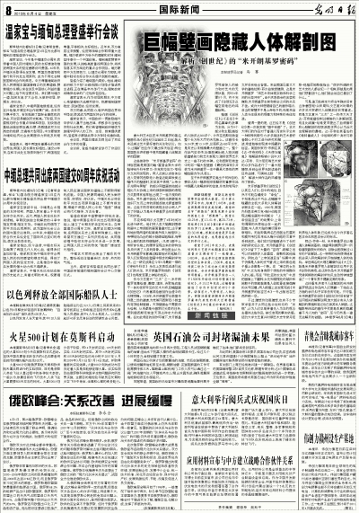 这样看来,热衷于人体解剖的米开朗基罗想透过作品向人们展露一下他在这方面的学识,似乎并非没有可能。只可惜,米开朗基罗在创作《创世纪》时没有留下任何相关的解释说明,绝大部分有关人体解剖的素描和笔记也已被其本人销毁。这幅影响深远的画作中究竟是否真的隐藏着不为人知的“密码”,至今仍然是一道无法解开的谜题。(本报罗马6月3日电)